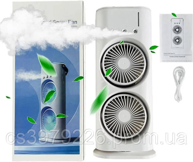 -60%Вентилятор настільний Double-ended Spray Fan LED подвійний з охолодженням підсвітка 3 швидкості